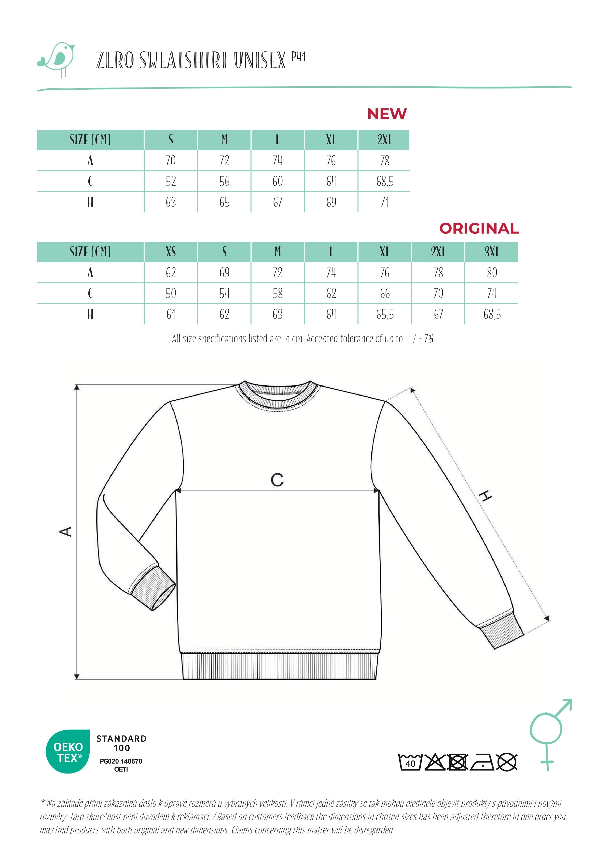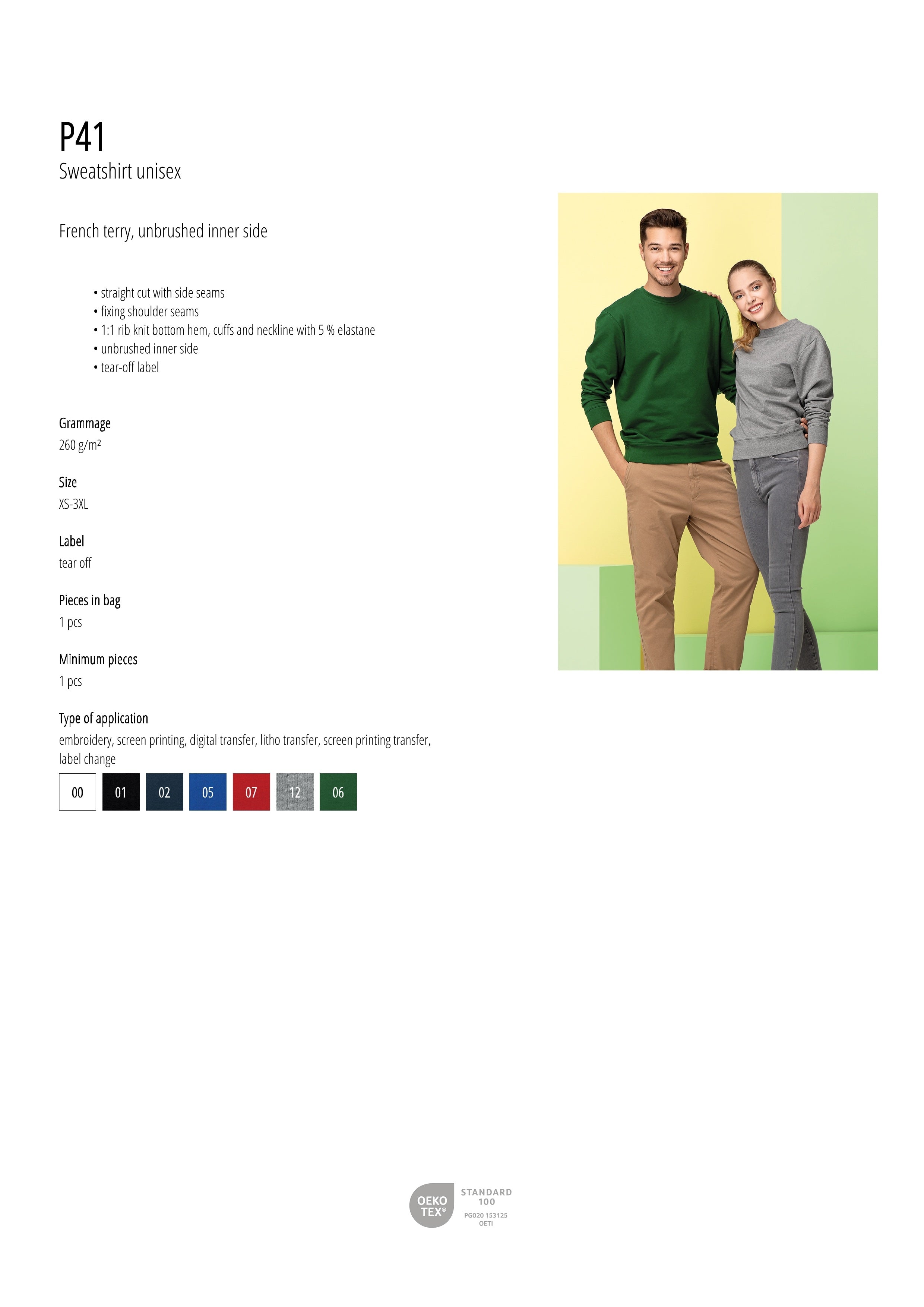 • 1:1 rib knit bottom hem, cuffs and neckline with 5 % elastane