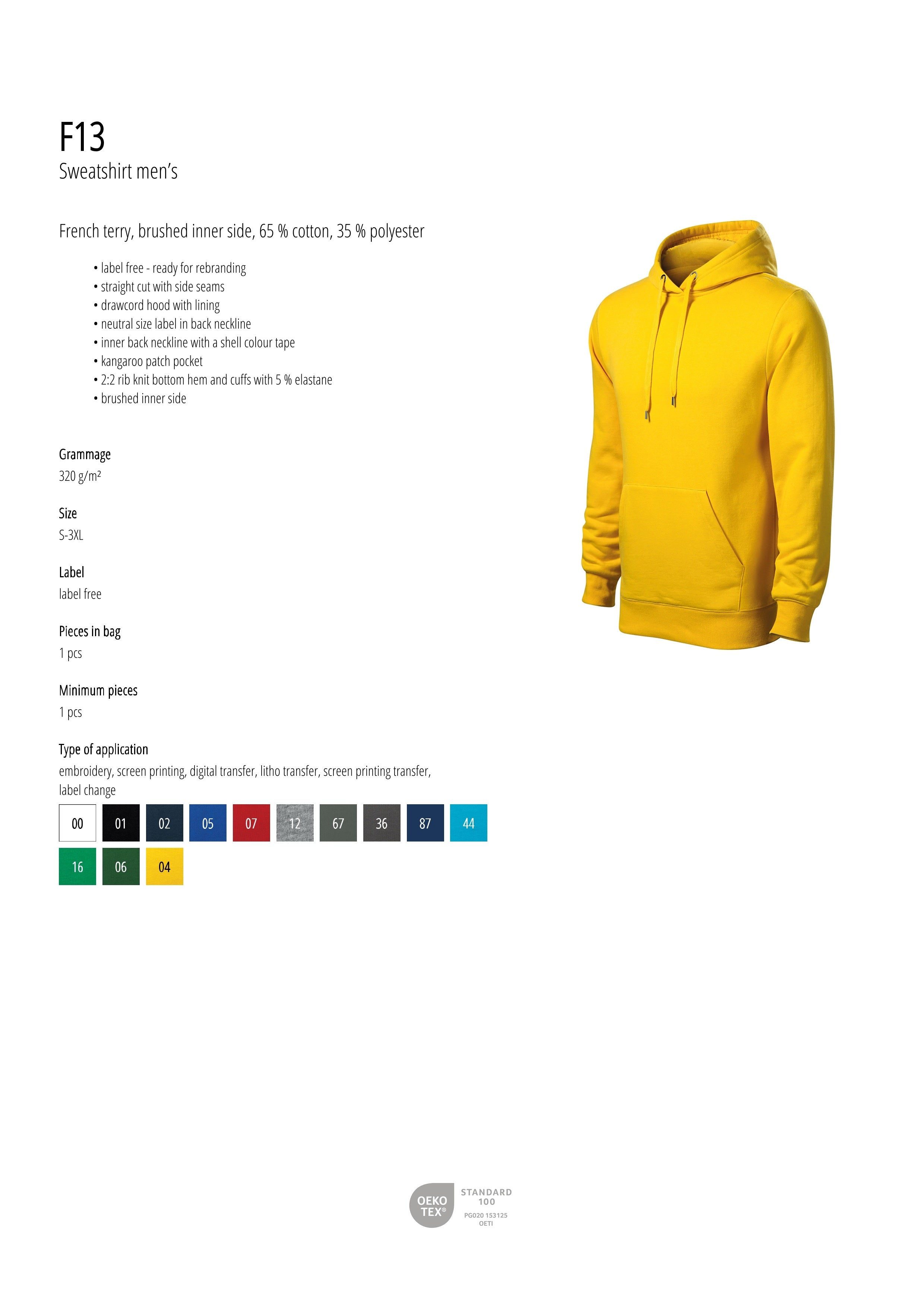 • Franse badstof, geborstelde binnenkant, 65% katoen, 35% polyester