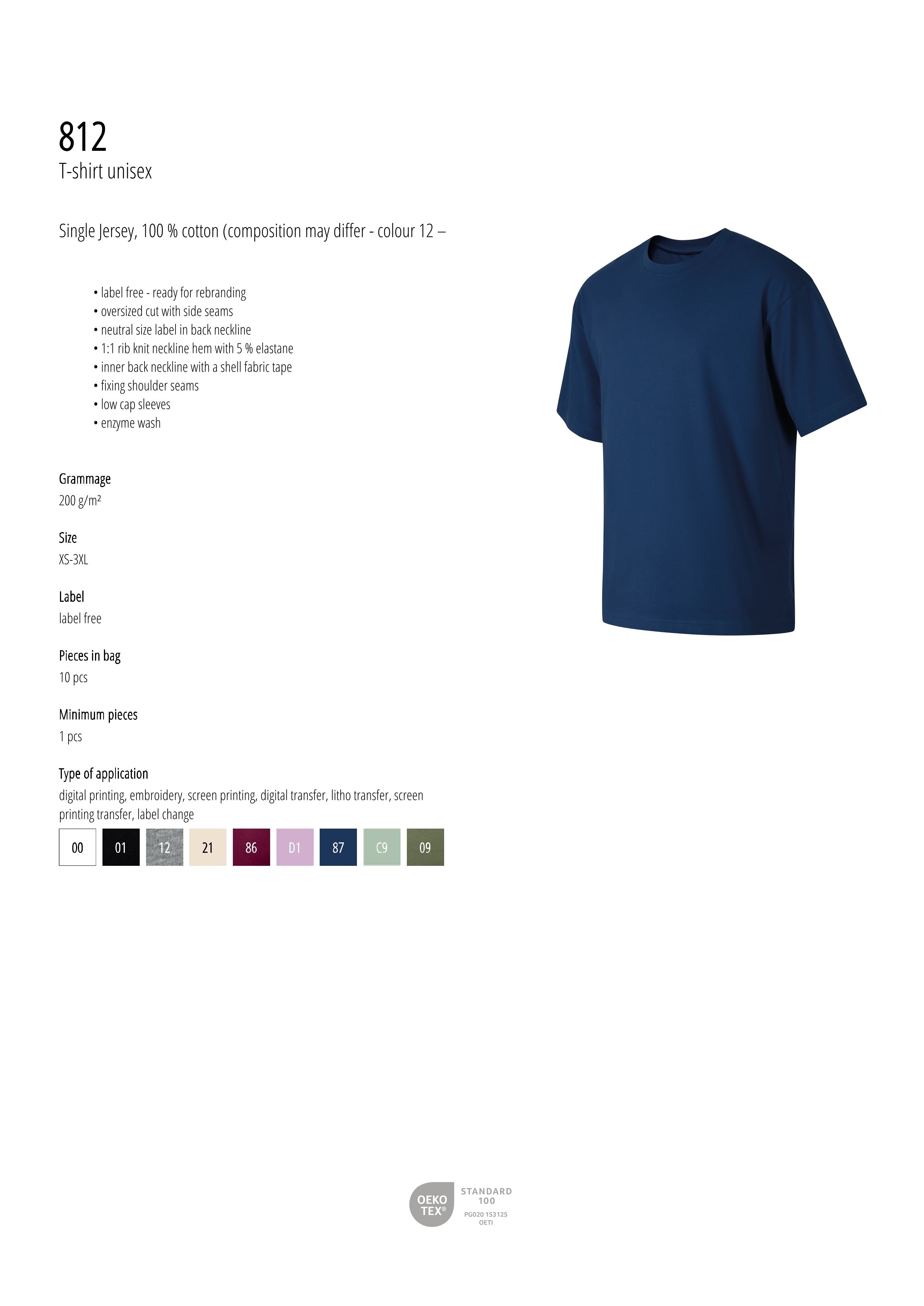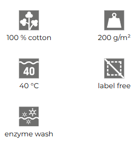 • 100% katoen (samenstelling kan variëren - kleur 12 – 85% katoen, 15% viscose), enzymwassing