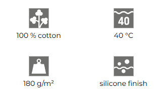 - 100% katoen (samenstelling kan verschillen - kleur 03 - 97% katoen, 3% viscose, kleur 12 – 85% katoen, 15% viscose), siliconen afwerking