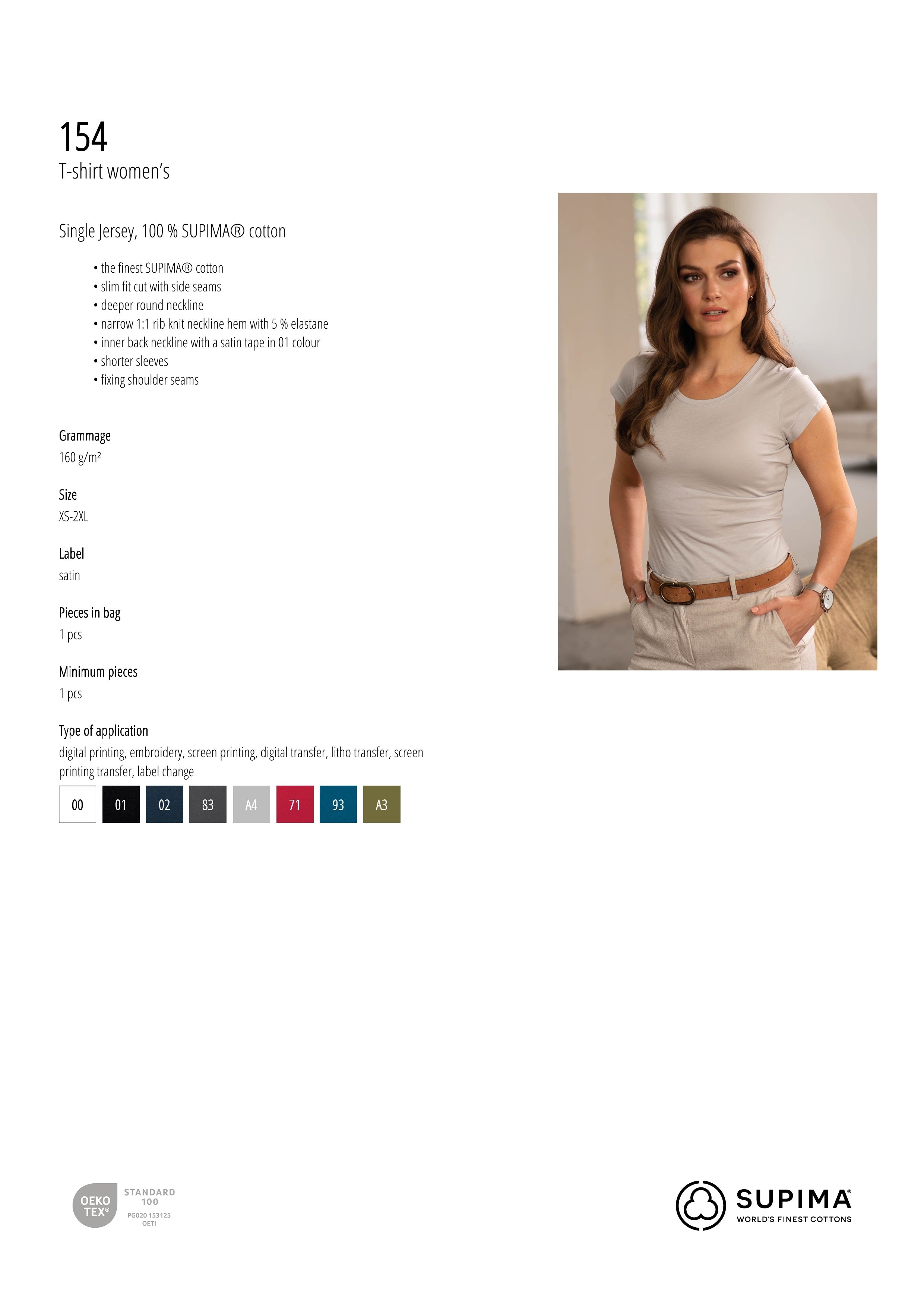 - Smalle halslijn met ribgebreide zoom (1:1) en 5% elastaan.