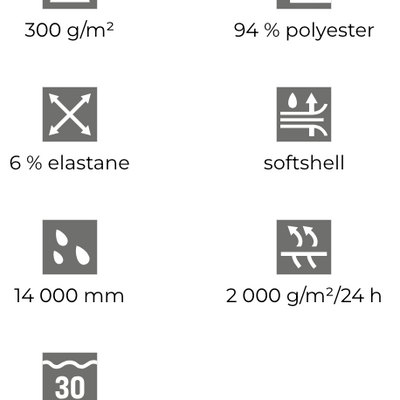 - waterdicht 14.000 mm, ademend 2.000 g/m²/24u