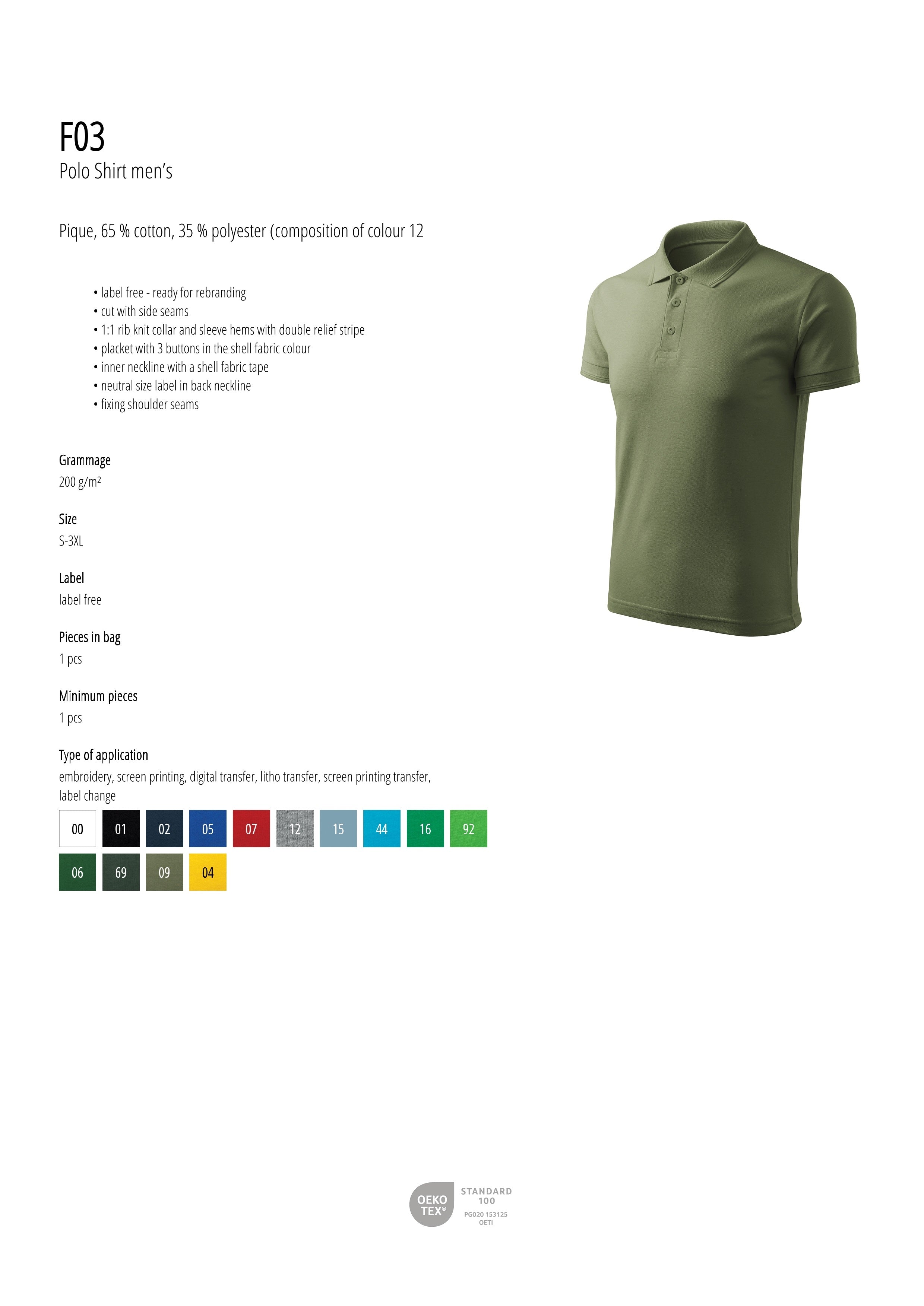 Solvante - Polo shirt men's 65% cotton 35% polyester FREE - F03