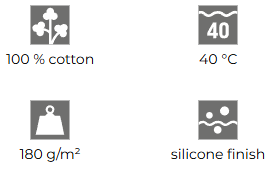 • 100% katoen (samenstelling van kleur 12 kan afwijken – 85% katoen, 15% viscose), siliconen afwerking